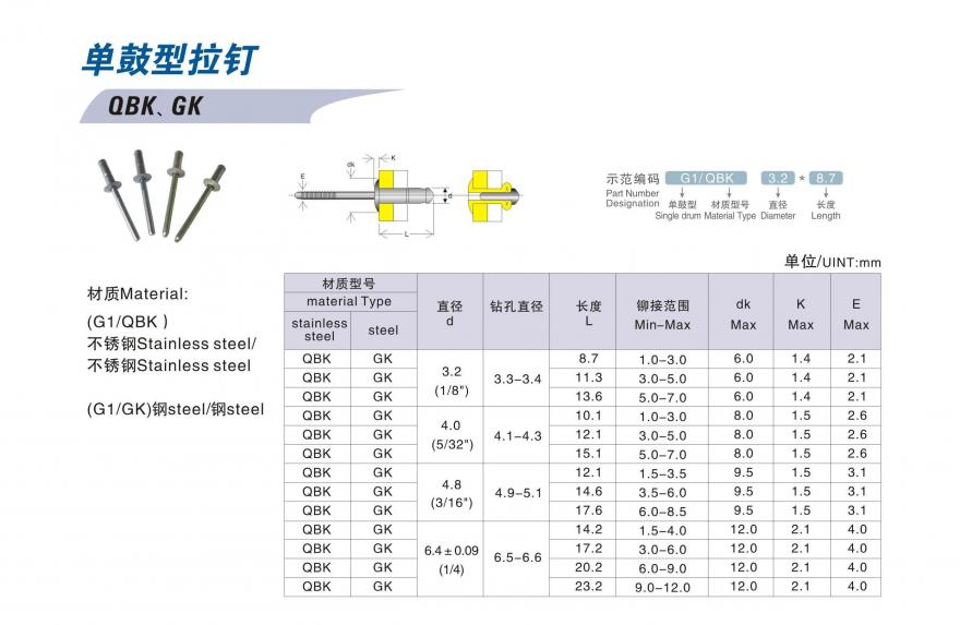 Main Products: 拉铆螺母(拉帽), 拉铆螺栓, 拉铆钉, 压铆螺母, 压铆螺柱, 涨铆螺母, 压铆螺钉, 全不锈钢抽芯铆钉, 全铁抽芯铆钉